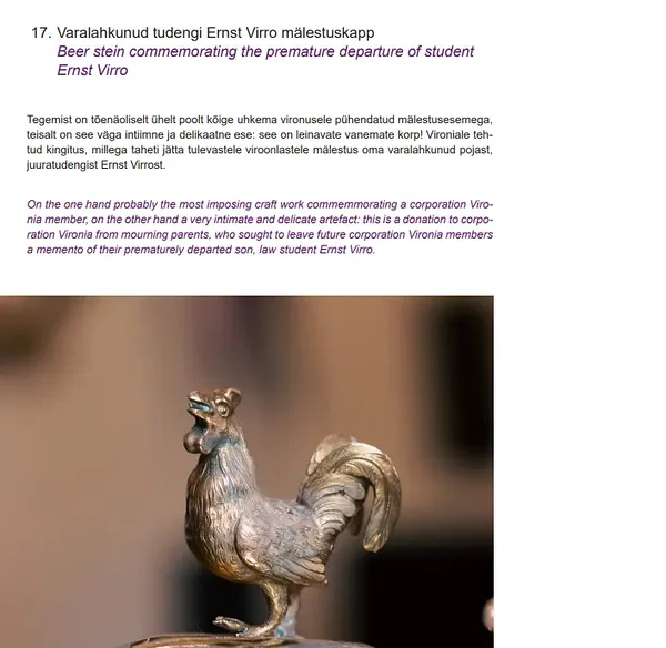 Vironia 125. sünnipäevaks ilmub trükist juubelialbum ”Valitud aardeid korporatsiooni Vironia 125 aasta vanusest varakambrist”.